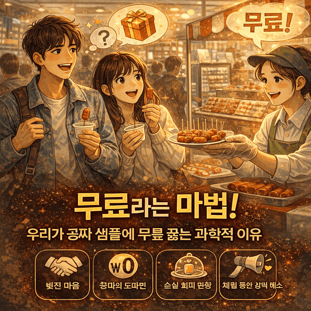 무료라는 마법: 우리가 공짜 샘플에 무릎 꿇는 과학적 이유 길을 걷다가 혹은 대형 마트에서 "한번 써보세요"라며 건네는 작은 화장품 샘플이나 시식용 음식을 마주할 때, 여러분은 어떻게 반응하시나요? 사실 저도 예전에 마트에서 소시지 한 조각을 시식했다가, 계획에도 없던 1kg짜리 묶음 상품을 장바구니에 담았던 민망한 기억이 있습니다. 분명 내 의지로 거절할 수 있을 것 같은데, 왜 손은 이미 샘플을 향하고 있는 걸까요?이 현상은 단순히 우리가 '공짜를 좋아해서' 일어나는 일이 아닙니다. 우리 뇌와 심리 기저에 깔린 아주 강력한 본능적 프로그램이 작동하고 있기 때문이죠. 오늘은 마케팅의 정수라고 불리는 '무료 샘플 전략' 뒤에 숨겨진 심리학과 뇌 과학적 이유를 파헤쳐 보겠습니다.1. 상호성의 원칙: '빚진..