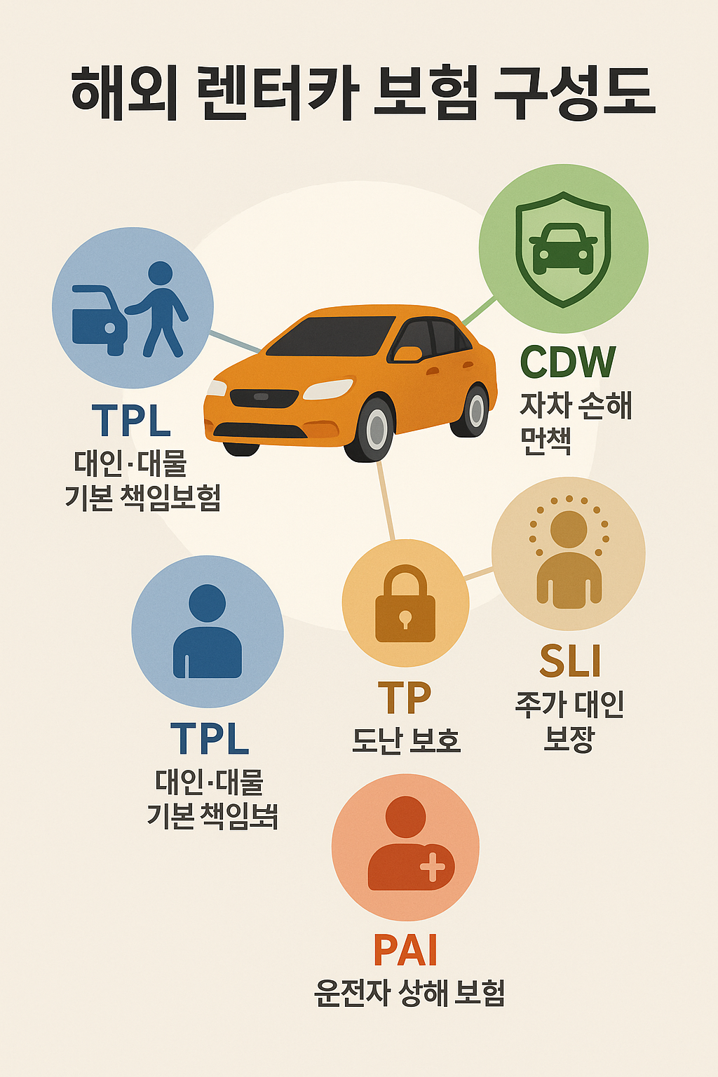 - 렌터카 보험 구성(TPL 기본 포함, CDW/SLI 옵션) 확인