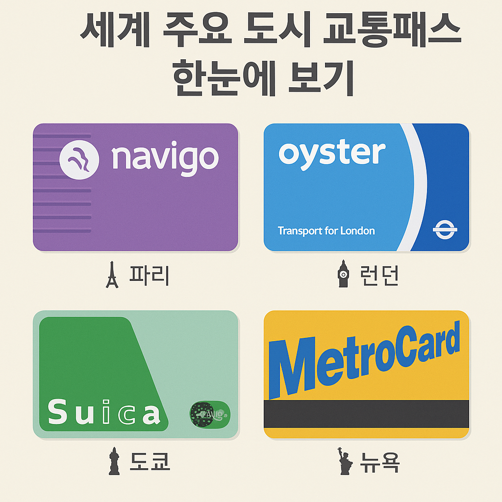 여행 준비에서 자주 놓치는 것이 바로 현지 교통 패스입니다. 싱가포르, 런던, 도쿄, 파리, 베를린, 뉴욕, 홍콩, 방콕 주요 교통카드를 조사해 비교했습니다.