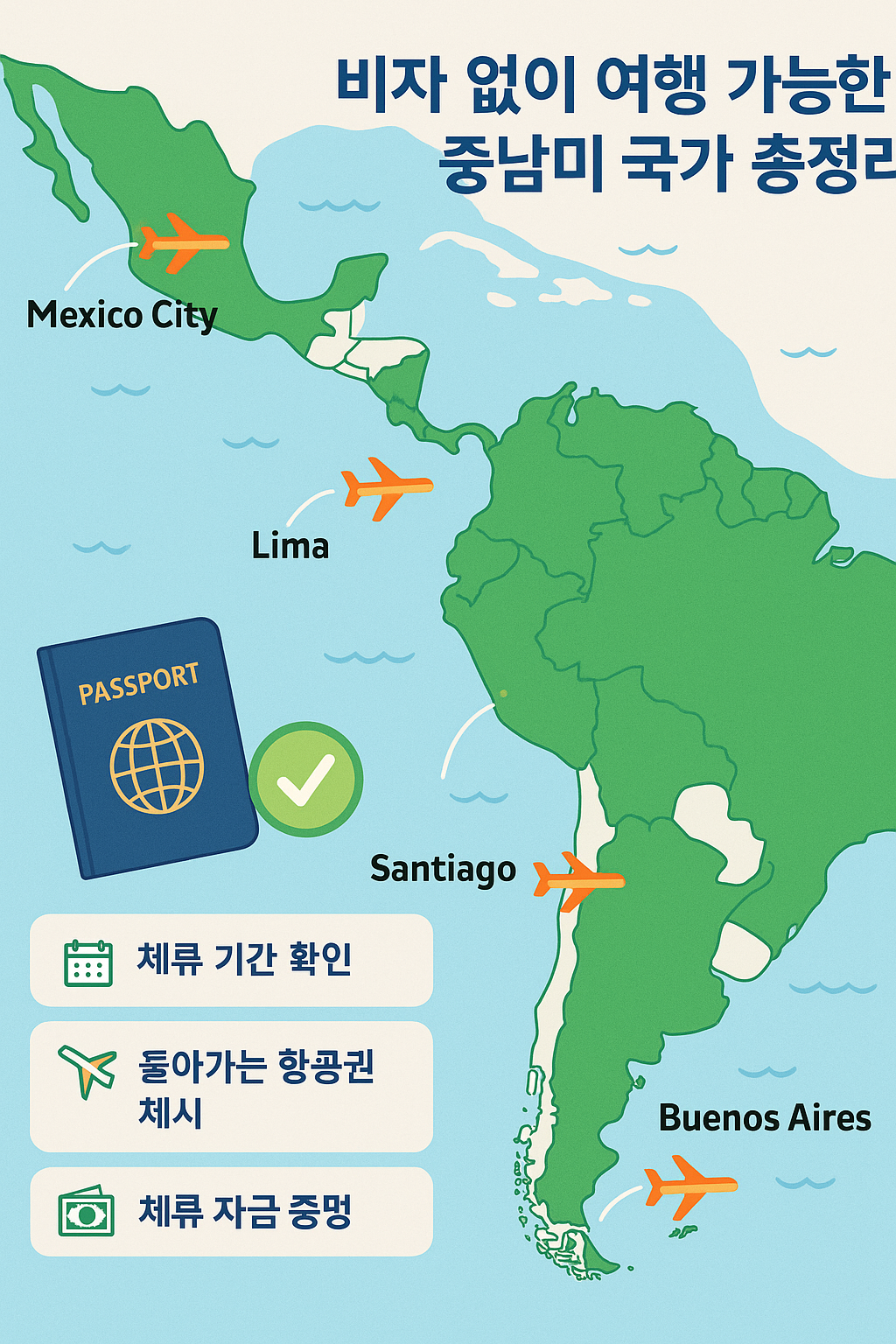 비자 없이 여행 가능한 중남미 국가 총정리 & 입국 절차 팁 (2025 최신 · 한국여권)