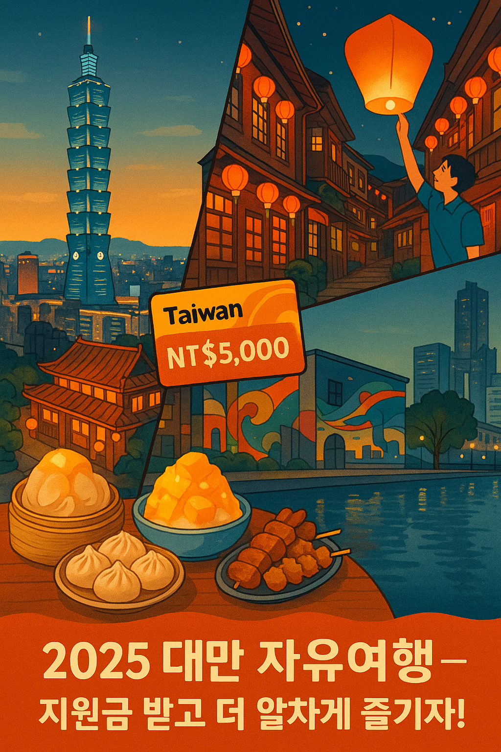 대만 자유여행을 준비하는 분들을 위해 타이베이·지우펀·가오슝·타이난 여행 코스, 맛집·야시장 리스트, 교통·숙소 팁, 그리고 2025년 최신 여행객 지원정책(NT$5,000 바우처 추첨, 단체 인센티브, 무비자 제도)을 정리했습니다.