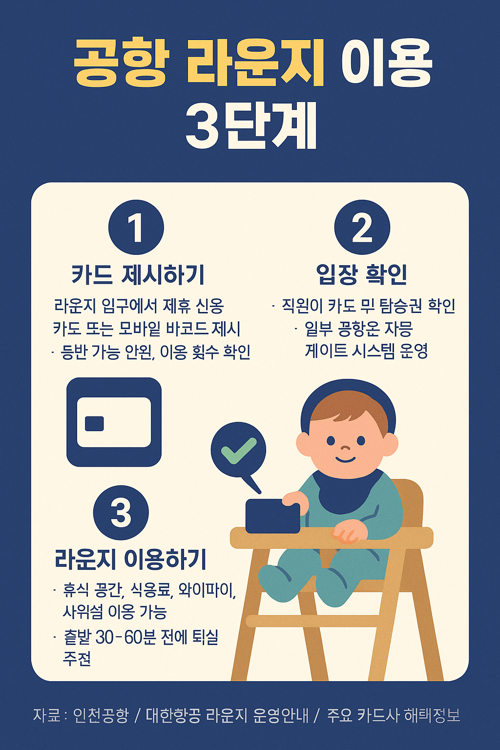 공항별 운영 시간과 동반자 입장 규정이 다르므로, 출국 전 Priority Pass 앱이나 카드사 공지에서 반드시 확인하세요.